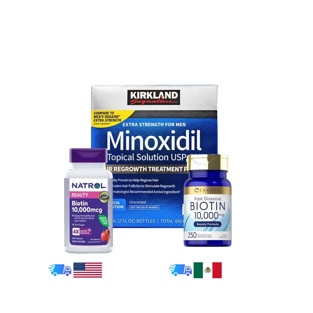 Descubre nuestra línea especializada en productos para el crecimiento capilar. Ofrecemos Minoxidil en diversas presentaciones, suplementos, dermarollers y tratamientos complementarios diseñados para fortalecer tu cabello, detener su caída y estimular su crecimiento. Productos seguros, accesibles y efectivos, con envío a todo México y Estados Unidos. Tu cuidado, nuestra prioridad.